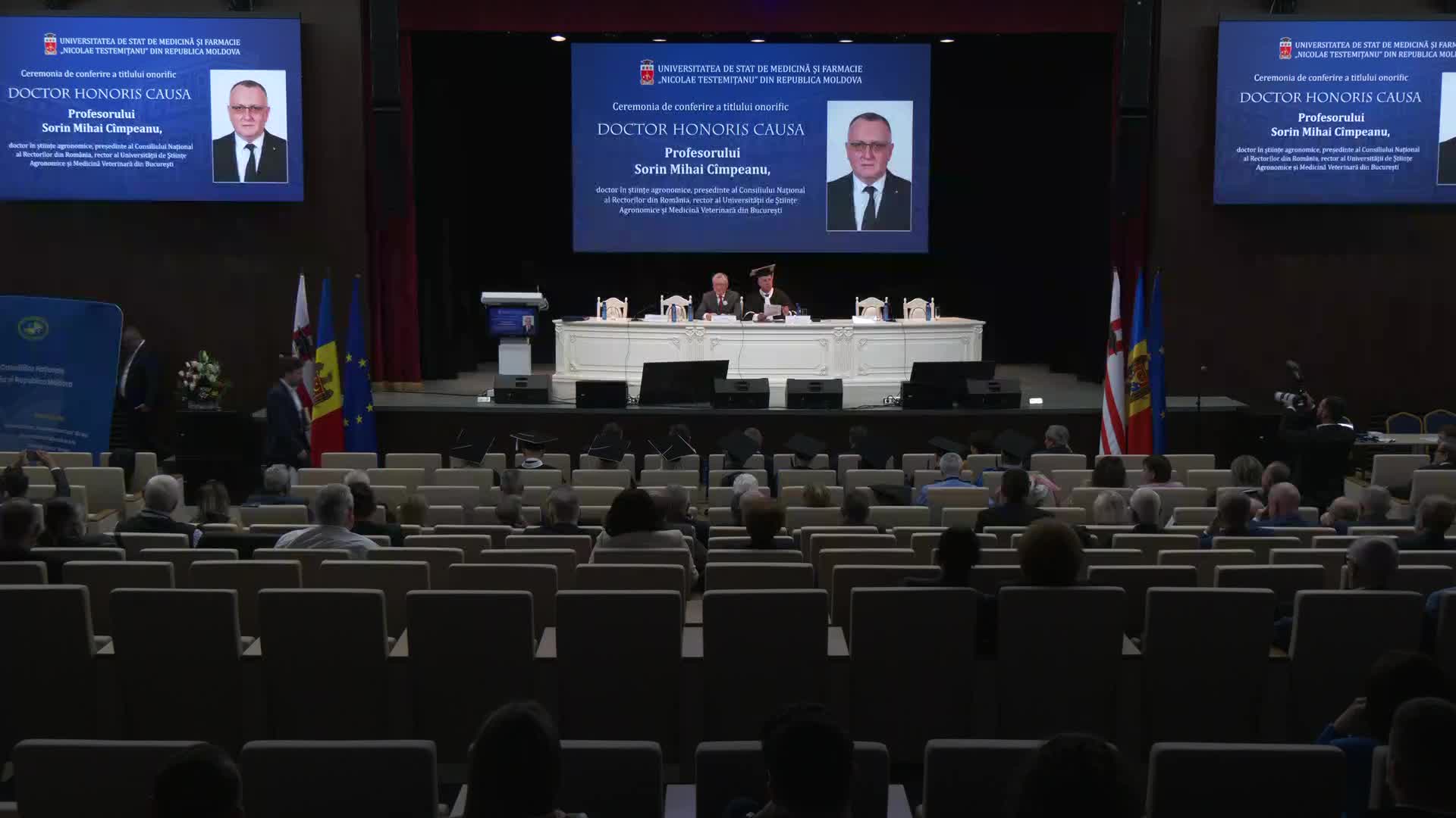 Ceremonia de conferire a titlului onorific Doctor Honoris Causa al USMF „Nicolae Testemițanu” profesorului Sorin Mihai Cîmpeanu, președintele Consiliului Național al Rectorilor din România