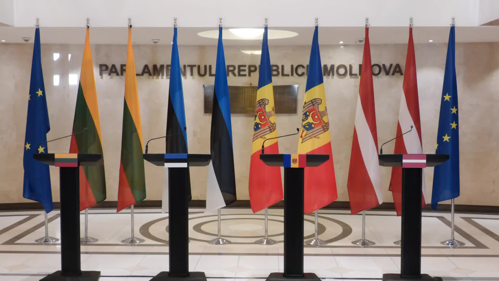 Conferință de presă susținută de Președintele Parlamentului Republicii Moldova, Igor Grosu, Președintele Riigikogu al Republicii Estonia, Lauri Hussar, Președinta Saeimei Republicii Letonia, Daiga Mieriņa, și Președintele Seimasului Republicii Lituania, Juozas Olekas